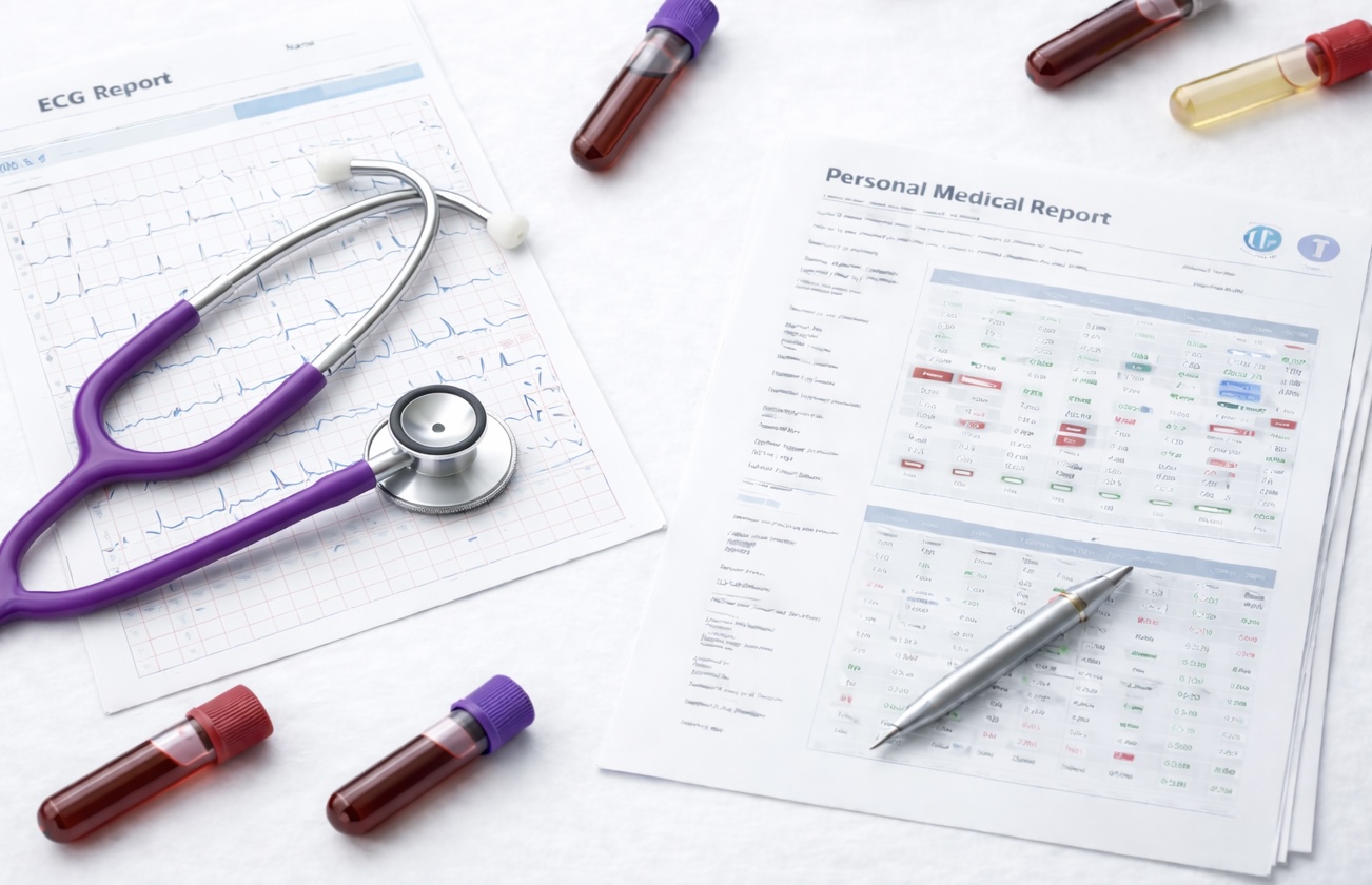 It also includes an ECG – (Electrocardiogram) test that records your heart's electrical activity, showing its rate, rhythm, and overall health by detecting signals through electrodes placed on your skin, helping diagnose issues like irregular beats, heart attacks, or poor blood supply.